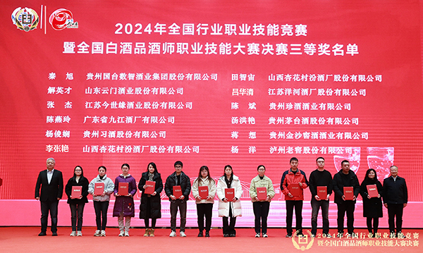 據了解,本次大賽作為中國白酒品鑒最高資格賽事,本著嚴謹、公開、公正的比賽原則,共設置了一輪理論競賽,十一輪嘗評能力競賽。試題來自多方,經梳理完善確定,內容涵蓋白酒全產業鏈,考核全面且有難度,選手整體表現優異。經過激烈角逐,最終產生了8名一等獎、18名二等獎和24名三等獎。其中,今世緣酒業的孫偉、王恒、張杰分別獲得一、二、三等獎。孫偉摘得2024年全國白酒品酒師職業技能大賽決賽第1名,被授予“全國食品行業技術能手”榮譽稱號。這份榮譽不僅是對個人能力的肯定,更展現了今世緣酒業品酒技藝方面的實力。