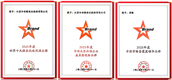 除品牌價值認證外,今世緣酒業在本屆華樽杯中還榮獲多項殊榮,體現了公司在行業內的全面實力:獲評“中國大型白酒企業成長型優勝品牌”,印證了企業在規模與成長性上的雙重優勢;國緣品牌榮獲“中國市場喜愛度領導品牌”,展現了強大的消費者基礎與市場口碑;企業同時獲授“世界十大獨具風味烈酒品牌”,標志著公司產品風味品質獲得國際級認可。這一系列榮譽從不同維度勾勒出今世緣酒業作為行業領先企業的綜合實力,既有規模優勢,又具成長潛力;既得市場認可,又獲專業肯定。