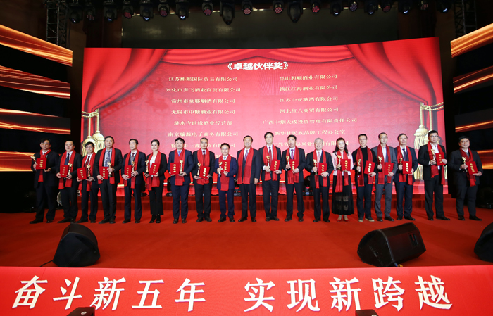會上,羊棟宣讀了《關于表彰2018年度優(yōu)秀合作伙伴的決定》,并舉行了頒獎儀式。江蘇熙熙國際貿(mào)易有限公司等18家公司被授予“卓越伙伴獎”,南京上尚酒業(yè)有限公司等20家公司被授予“精誠合作獎”,徐州月緣商貿(mào)有限公司等10家公司被授予“國緣品牌銷售突破獎”,盱眙縣新興商貿(mào)有限公司等10家公司被授予“今世緣品牌提質增效獎”,盱眙舜韜商貿(mào)等5家公司被授予“高溝品牌復興推廣獎”,南京市溧水區(qū)豐碩酒業(yè)經(jīng)營部等30家公司被授予“市場拓展獎”,淮安市清江浦區(qū)胡氏超市等10家加盟店被授予“優(yōu)秀加盟店獎”,上海竭立實業(yè)有限公司等2家公司被授予“優(yōu)秀電商獎”,云酒頭條等5家行業(yè)媒體被授予“優(yōu)秀傳播獎”,江蘇華宇印務有限公司等5家公司被授予“優(yōu)秀供應商獎”,華泰紫金投資有限責任公司等5家公司被授予“優(yōu)秀投資機構獎”。胡躍吾作今世緣酒業(yè)2019年度營銷工作報告。與會人員一同觀看了《今世緣酒業(yè)2018巡禮》專題片。前方各營銷中心、辦事處經(jīng)理,后方各部門負責人參加會議。