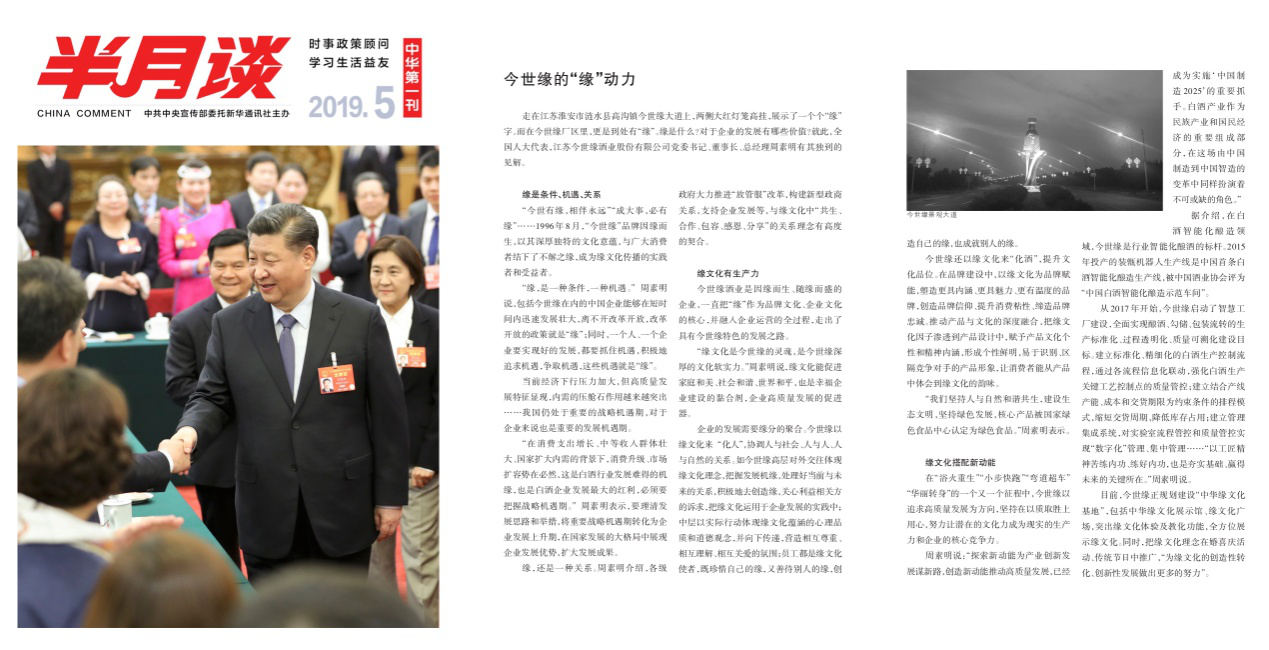編者按:全國(guó)兩會(huì)期間,被譽(yù)為“中華第一刊”的《半月談》在2019年第5期刊登了記者專訪《今世緣的“緣”動(dòng)力》,現(xiàn)全文轉(zhuǎn)載如下:
