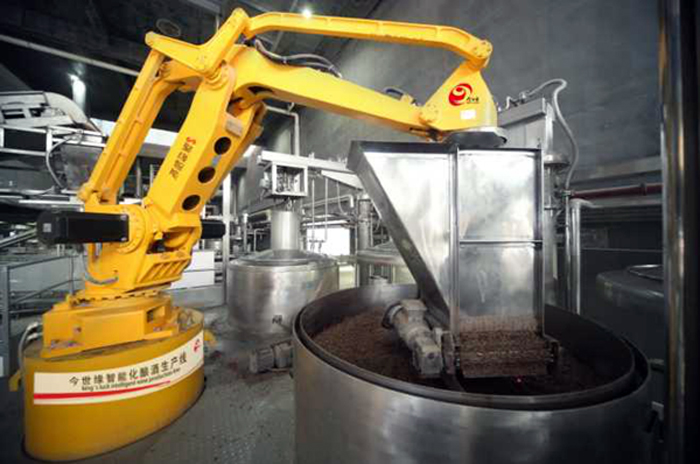在今世緣酒業智能化釀酒車間,28名“緣小新”正努力為消費者釀造美酒。