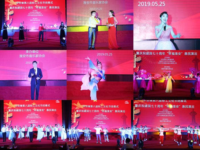 閉幕式上,由市委宣傳部、市文聯(lián)、今世緣酒業(yè)主辦,市音樂(lè)家協(xié)會(huì)承辦的慶祝建國(guó)70周年“幸?;窗病被菝裱莩鰸馇樯涎?。市音樂(lè)家協(xié)會(huì)的演員們表演的二胡合奏《新賽馬》、女聲獨(dú)唱《如夢(mèng)令》、男聲獨(dú)唱《我的愛(ài)人你可聽(tīng)見(jiàn)》、女聲獨(dú)唱《絲綢之路》、雙人舞《兄弟》、薩克斯獨(dú)奏《這就是愛(ài)》,公司質(zhì)量管理黨支部表演的開(kāi)場(chǎng)舞《護(hù)花使者》、研究院黨支部表演的舞蹈《愛(ài)的華爾茲》、包裝黨支部表演的舞蹈《厲害了,我的國(guó)》等精彩的節(jié)目,為公司員工奉獻(xiàn)了一場(chǎng)豐富的文化大餐。在全體人員齊唱《我和我的祖國(guó)》中,今世緣第八屆職工文化節(jié)圓滿(mǎn)閉幕。