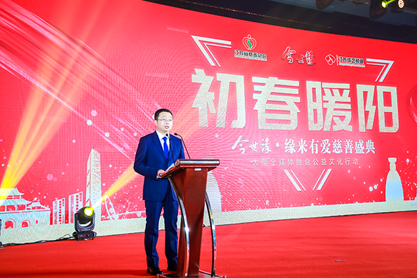 今世緣酒業副總經理胡躍吾在“初春暖陽——今世緣·緣來有愛”慈善盛典致辭。