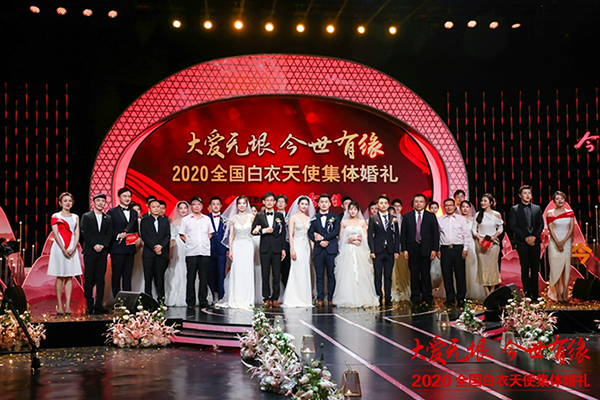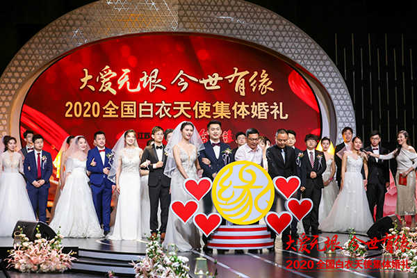 “大愛無垠,今世有緣”2020全國白衣天使集體婚禮主辦方領(lǐng)導(dǎo)嘉賓祝福新人。