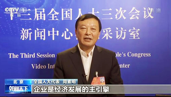 央視《朝聞天下》播報(bào)全國人大代表周素明—— 企業(yè)是經(jīng)濟(jì)發(fā)展的主引擎