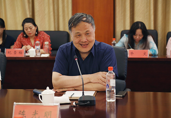 中國新聞社江蘇分社社長陳光明在交流會上講話。