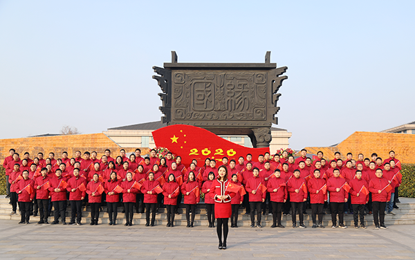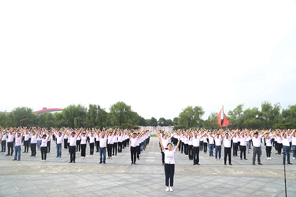 今世緣酒業員工在企業文化廣場放歌《我的祖國》。