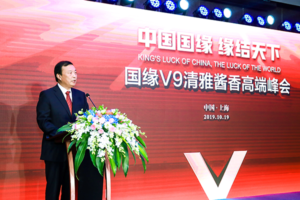 今世緣酒業黨委書記、董事長、總經理周素明在上海舉行的“國緣V9”清雅醬香高端峰會上