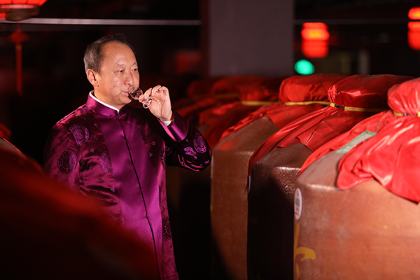 中國白酒首席品酒師、中國白酒大師、今世緣酒業副董事長、副總經理吳建峰博士在品鑒貯存的國緣V9原酒