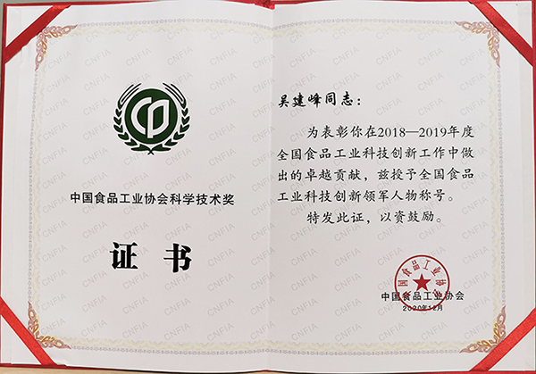 今世緣酒業(yè)副董事長、副總經理吳建峰榮獲“全國食品工業(yè)科技創(chuàng)新領軍人物”稱號。