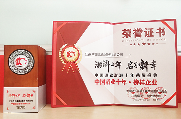 今世緣榮獲“中國酒業(yè)十年?榜樣企業(yè)”稱號