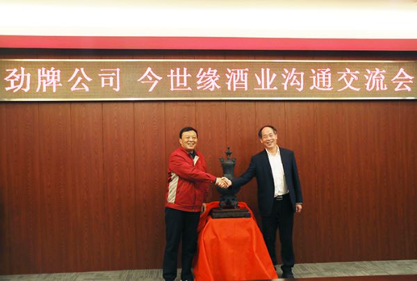 12月25日,勁牌有限公司董事長、總裁吳少勛帶領管理、營銷、生產、技術團隊來今世緣參觀交流。今世緣酒業黨委書記、董事長周素明,黨委副書記、副董事長、總經理顧祥悅,副董事長、副總經理吳建峰,黨委副書記、工會主席魯正波,副總經理、董事會秘書王衛東,副總經理胡躍吾、李維群等陪同。雙方還就營銷管理、釀酒生產、績效激勵等方面進行了深入探討與交流。