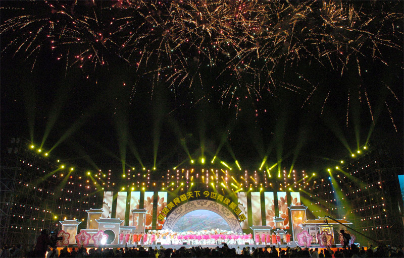 20時許,情景歌舞《魅力淮揚》拉開了晚會的帷幕。韓國影、視、歌多棲明星張娜拉,著名歌唱家閻維文、湯燦、成方圓、蔡國慶等國內外藝術家們與淮安人民一起以載歌載舞的形式、璀璨多姿的表演、奔涌澎湃的激情,喜迎盛事,歡樂今霄。晚會分《淮揚飄香》、《兩岸情緣》、《世界之約》三個篇章。CCTV《星光大道》2007年度總冠軍楊光帶來的《緣聚淮安》,道出了淮安人民的心聲。來自美國的著名鄉村音樂人馬克力文演唱了他為淮安創作的歌曲《淮安的未來充滿希望》。塞拉利昂著名歌手瑪麗亞為淮安市民傾情演唱了《說唱臉譜》、《嫁給中國人》。南京軍區政治部前線文工團優秀青年歌手李暢暢、浦競峰帶來的男女生二重唱《今世緣之歌》,送上了對今世緣創牌15周年的祝福。淺淺的海峽,阻擋不了尋緣的腳步。在晚會現場,江丙坤先生的夫人江陳美惠女士傾力組建的以“歌唱兩岸一家親,以歌為媒傳親情”的文藝團體——臺灣著名雅樂合唱團,為現場觀眾帶來了《月亮代表我的心》、《甜蜜蜜》、《流浪到淡水》三首名曲。
