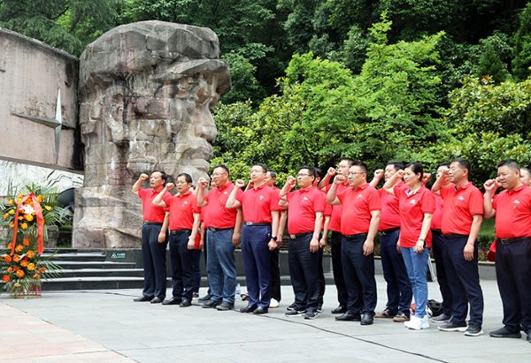 紅色江山,熱血鑄就。鳳凰山麓、湘江河畔,一座山,見證歷史;一種精神,鏈接未來。遵義市紅軍山烈士陵園紀念碑巍然聳立,四周青松翠柏,莊嚴肅穆。周素明、顧祥悅與公司相關方黨員代表向革命先烈敬獻花籃。全體學員駐足憑吊,默哀鞠躬,賡續(xù)英烈精神、砥礪家國情懷。隨后,面對黨旗莊嚴宣誓,重溫入黨誓詞。“我志愿加入中國共產黨,擁護黨的綱領,遵守黨的章程……”鏗鏘有力的誓言在紀念碑前回蕩。