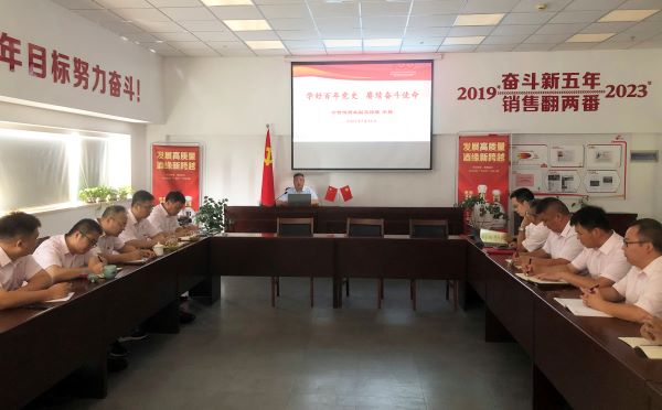 7月13日,公司黨委書記、董事長周素明為銷售服務黨支部全體黨員講授黨史學習教育專題黨課。要求銷售服務黨支部全體黨員當好公司高質量發展的好參謀、好幫手,始終牢記初心使命,積極主動擔當作為,不辜負公司黨委,不辜負前方將士,不辜負經銷商等相關方。聚焦高質量,聚力新跨越,為公司百億征程發揮關鍵作用,書寫引領市場發展新榮光。公司黨委副書記、監事會主席倪從春,副總經理胡躍吾,以及銷售服務黨支部黨員參加學習,縣委巡回指導組成員列席專題黨課。銷售服務黨支部書記孫萬軍主持專題黨課學習。
