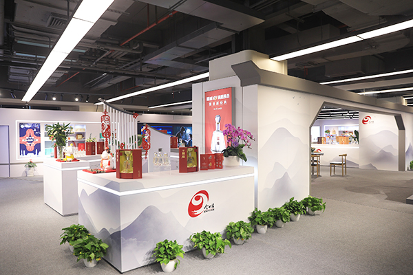新華社民族品牌工程·品牌聯合館陳列設計彰顯著古典與現代融合的文化特質,以一幅緩緩打開的卷軸引導參觀者流連駐足。核心區域的今世緣展廳精彩紛呈、酒香四溢。