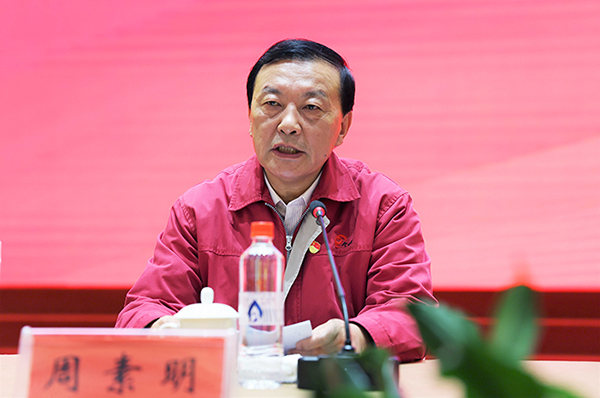 今世緣酒業(yè)黨委書記、董事長周素明主持會議。