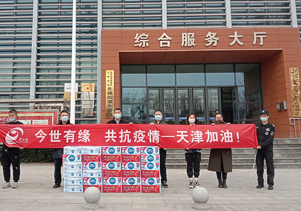 在天津,今世緣天津辦事處攜手當地經銷商,前往天津市濱海新區北塘街道辦事處、新港街道辦事處和新港近開里社區慰問,叮囑疫情防控人員做好個人防護,注意防寒保暖。
