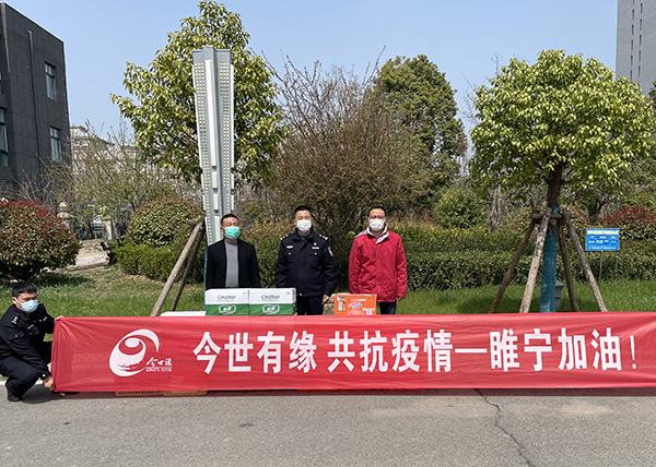 在徐州睢寧,今世緣睢寧辦事處慰問睢寧縣疫情防控人員,送去愛心物資,表達對一線防控人員的敬意。睢寧經濟開發區派出所所長龔大勇說,今世緣送來的溫暖,增添了大家同心戰疫的信心。