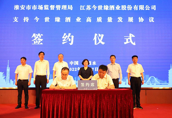淮安市市場監管局與今世緣酒業簽訂支持江蘇今世緣酒業股份有限公司高質量發展協議。 吳燹 攝
