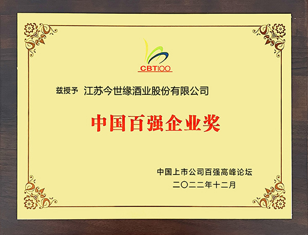 12月17日,第二十二屆中國上市公司百強高峰論壇暨第八屆中國百強城市全面發展論壇在海南三亞舉行,今世緣榮膺“2022年中國百強企業獎”,今世緣酒業副總經理、董事會秘書王衛東代表公司領獎。