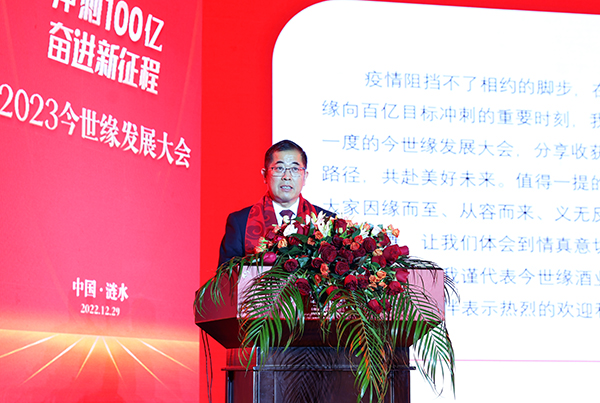 12月29日,以“沖刺一百億,奮進新征程”為主題的2023今世緣發展大會在江蘇淮安舉行,來自全國各地的合作伙伴相聚今世緣,分享收獲喜悅,探討發展路徑,共赴美好未來。今世緣酒業黨委書記、董事長、總經理顧祥悅提出,2023年是今世緣的重要時間節點,要以百億目標推進跨越發展,以百倍信心扛起責任擔當,以百億技改夯實發展底氣,以百折不撓彰顯壯志豪情。