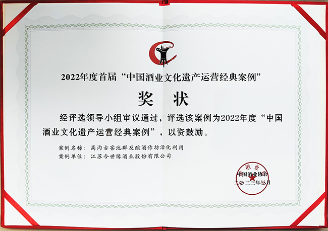 遺產是火炬。為激勵廣大酒企保護好、運營好燦爛豐富的中國酒業文化遺產,讓民族產業永遠綻放榮光。中國酒業協會組織文化遺產運營經典案例評選,今世緣酒業“高溝古窖池及釀酒作坊活化利用”成功入選首屆“中國酒業文化遺產運營經典案例”。茅臺、五糧液、洋河、瀘州老窖、汾酒、古井等共12家酒企獲此殊榮。