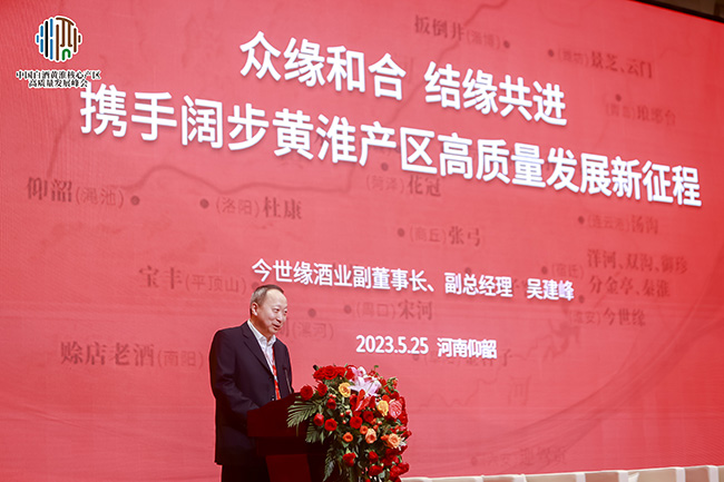 5月25日,以“強質固本,守正創新”為主題的第四屆中國白酒黃淮核心產區高質量發展峰會在河南澠池召開,就黃淮白酒產區發展現狀以及新環境下黃淮白酒產區健康、可持續發展等方面深入探討。今世緣酒業副董事長、副總經理吳建峰在會上作主旨演講,就黃淮產區高質量發展,分享了今世緣的實踐。