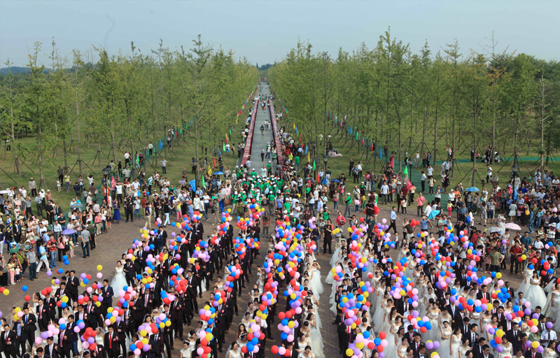 9月19日,以“緣系千秋·情定揚州”為主題的“揚州2500周年城慶今世緣集體婚禮”,在揚州瘦西湖畔的宋夾城體育休閑公園盛大舉行。中外258對新人身著西式婚紗禮服,在2500歲古城的見證下喜結連理。