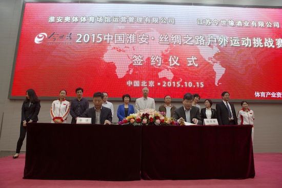 10月15日,今世緣獨家冠名“2015’中國淮安·絲綢之路國際戶外運動挑戰賽”新聞發布會在北京產權交易所舉行。這是絲綢之路國際戶外運動挑戰賽在體育產業資源交易平臺正式掛牌之后的首單成交,也是中國戶外運動的首次產權交易。中央國家機關戶外健身運動協會常務副主席田力普、秘書長田兆榮,淮安市副市長王紅紅,北京產權交易所副總裁周志武,北京華奧星空科技發展有限公司副總經理李燕明,江蘇今世緣酒業股份有限公司副總經理陸克家出席發布會。